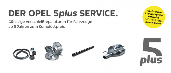 Neuer Name, gleiche Qualität. Und immer noch günstig: Die Opel Komplettpreis-Offensive heißt jetzt Opel 5plus Service. Sonst ändert sich nichts.